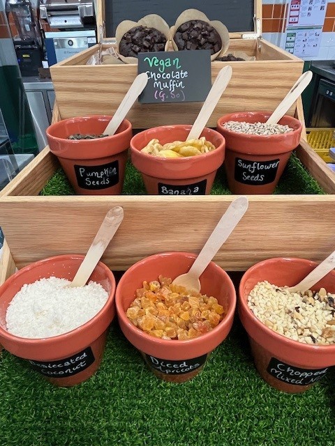- Seasonal breakfast bowl with plant-based coconut yogurt or Greek-style yogurt with compote & toppings – £3