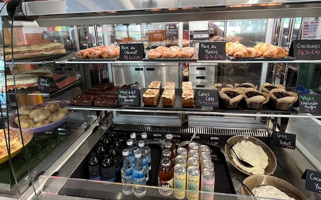Our menu changes daily, featuring fresh, seasonal dishes that creatively upcycle surplus ingredients to minimise waste and maximise flavour. Think surplus tomato salads transformed into quiches, or hearty terrines reinvented as golden sausage rolls.